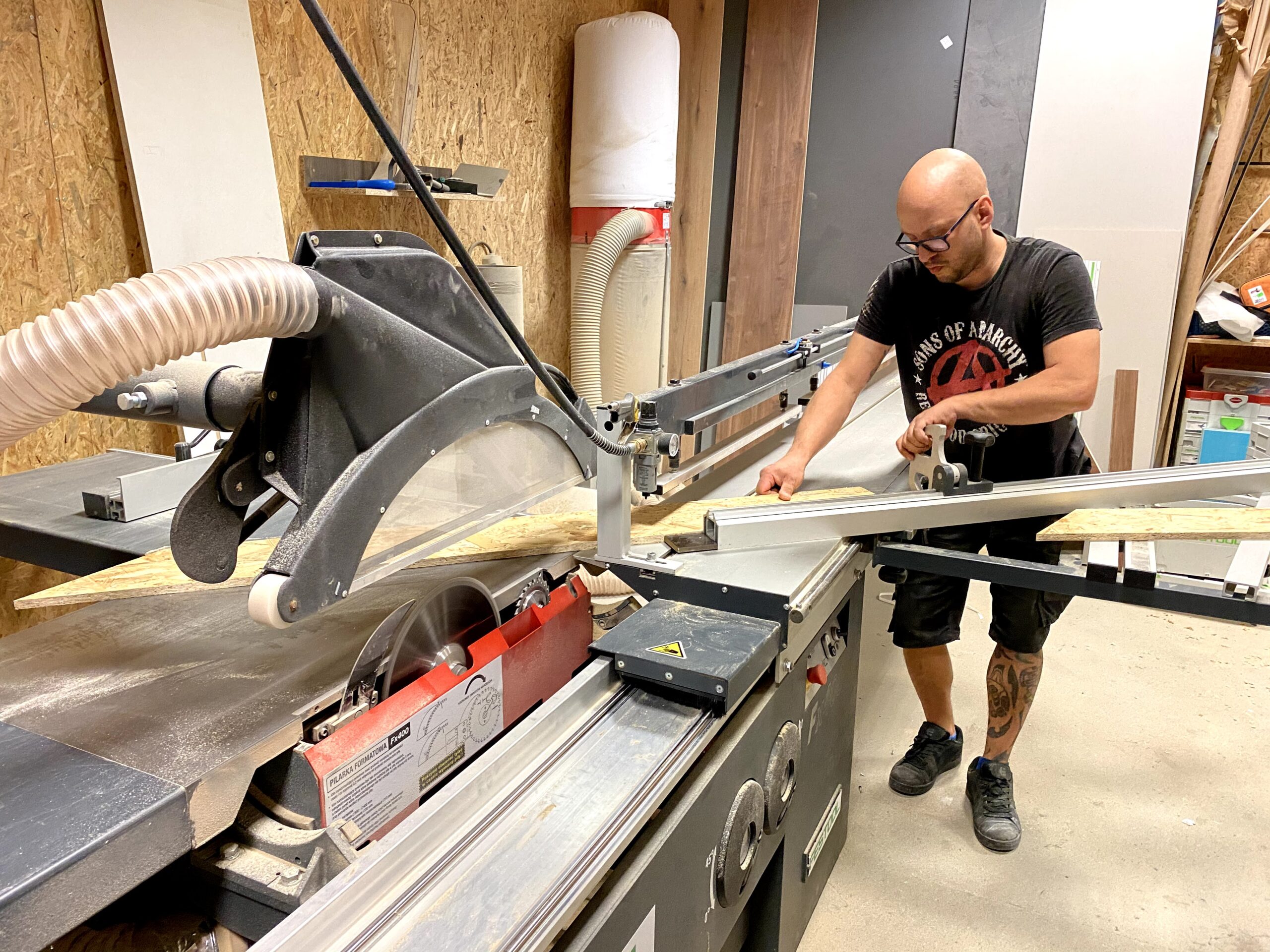 Własne zaplecze stolarskie pozwala nam precyzyjnie kontrolować każdy etap powstawania zabudowy, od surowej płyty po montaż ostatniego uchwytu.